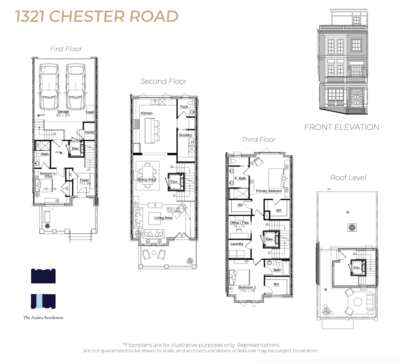 A traditional brick exterior sets a timeless first impression, while inside, the layout balances openness with privacy. Designed for both everyday ease and gracious entertaining, the home features refined interiors, stone countertops, and carefully considered living spaces that feel substantial yet welcoming. A private elevator connects each level, allowing effortless movement throughout the home and reinforcing the sense of long-term livability.